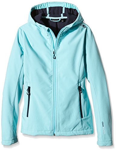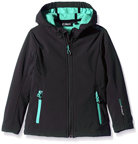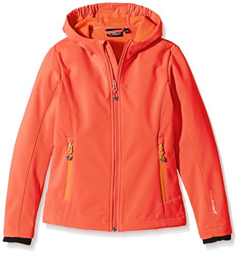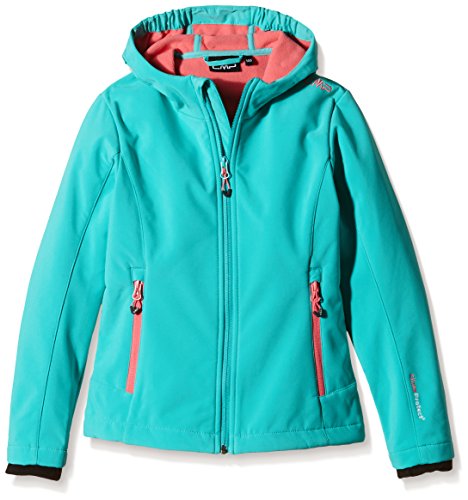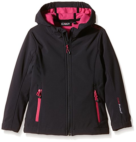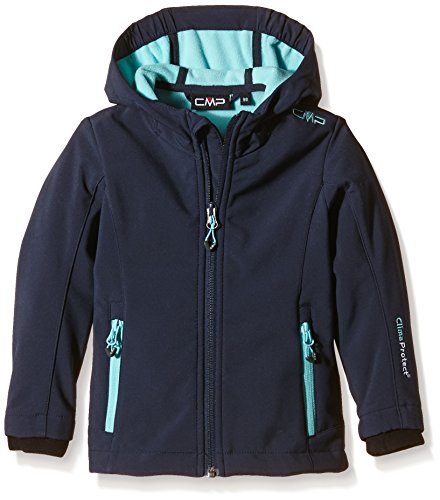 CMP Mädchen Softshell Jacke Fix Hood. Für die Kleinsten mit Ihrer Lust, den ganzen Tag draußen zu spielen, hat CMP diese Softshelljacke mit Kapuze entwickelt. Der technische und funktionale Aspekt dieser Jacke ist die besondere Struktur aus drei Schichten. Damit ist das Gewebe absolut winddicht, wasserabweisend und dank des speziellen mikroporös beschichteten Materials Wind Protect, atmungsaktiv. Das Innenfutter aus Fleece hält warm, ist weich und angenehm auf der Haut. Die Jacke verfügt zudem über eine Feste Kapuze und 2 Seitentaschen. Material: 96% Polyester, 4% Elasthan.Feature