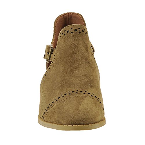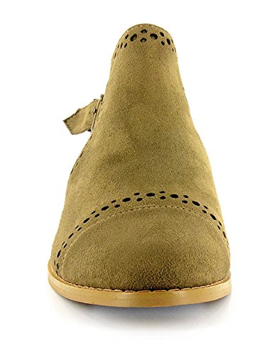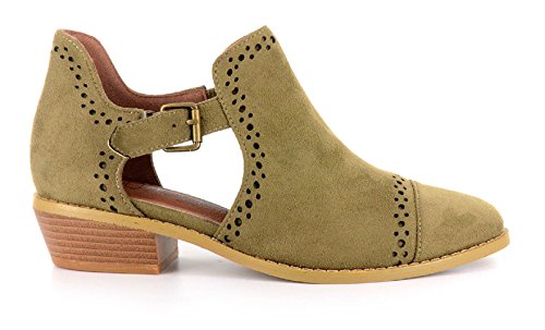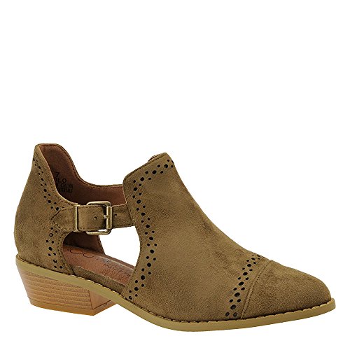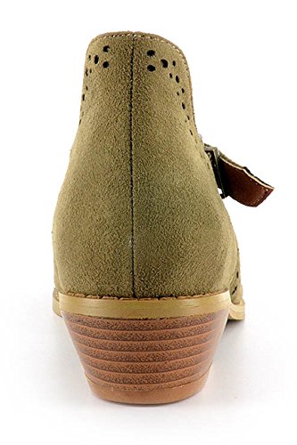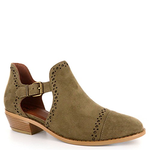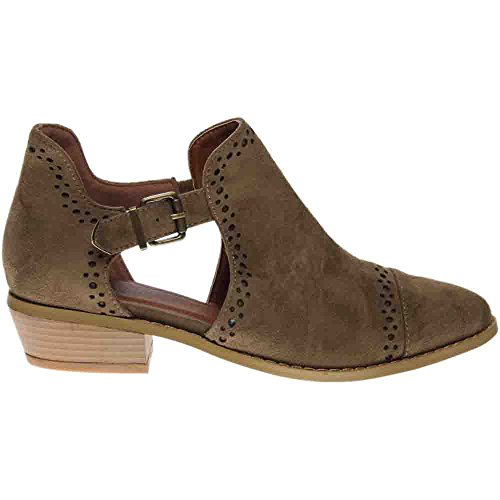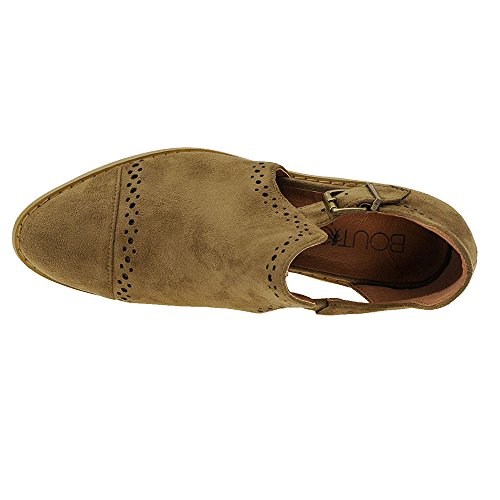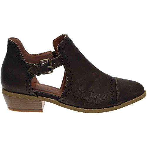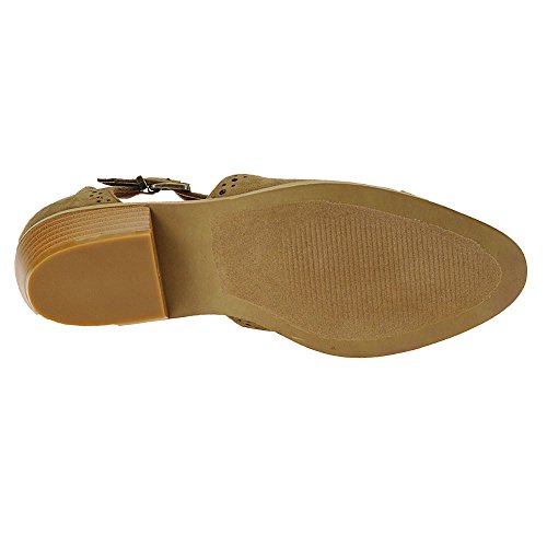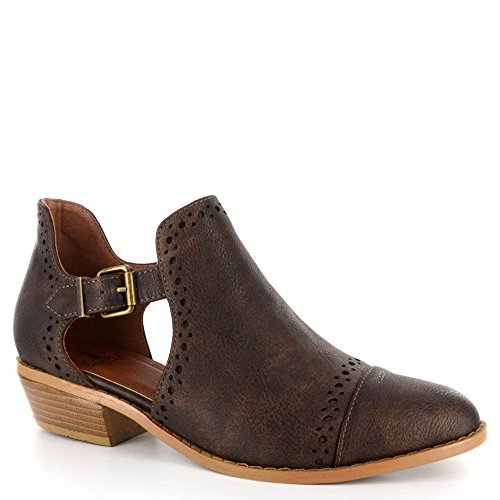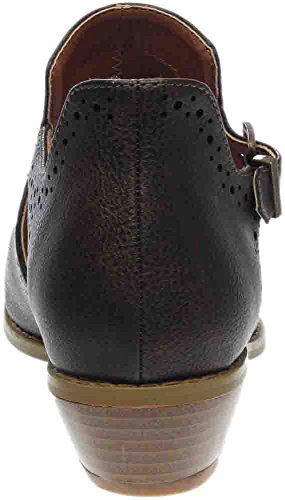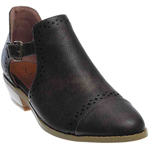 Binding : Apparel Product Description *Take a walk and kick up your stylish heels with this chic flat *Distressed faux leather upper *Perforation details and side cut-outs *Adjustable metal buckle strap *Lightly cushioned footbed *1/2" stacked heel *Available in whole sizes only, half sizes please order the next size up 0