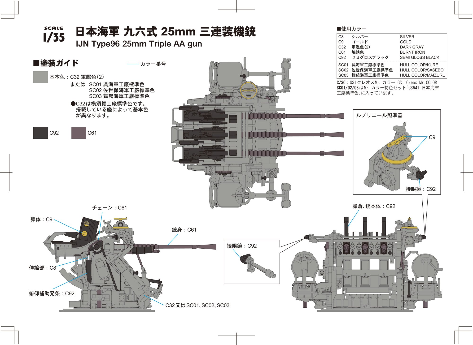 Electric powered type (2 types) equipped with Le Preière sight of anti-aircraft gun "Ninety-six formula 25 mm triple unit gun" mounted on many Japanese Navy ships from battleship, aircraft carrier, cruiser, destroyer to auxiliary ship