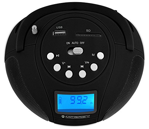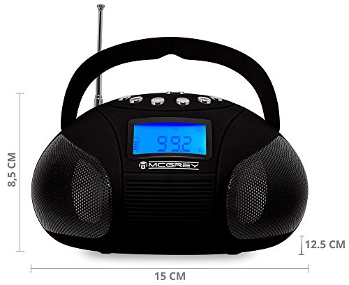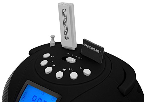 McGrey MC-50BT-BK Bluetooth Lautsprecher Akku Boombox mit Radio (USB-SD-Slot, UKW-Radio, Radiowecker, AUX-in, LCD-Display, Handy Akku, Netzteil) schwarz