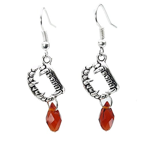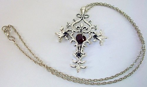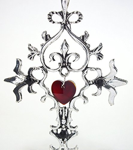DaisyJewel Gothic Red Heart Vintage Silvertone Cross Pendant Necklace & Matching Vampire Fang Blood Drop Earrings. Featuring Lightweight Skin-Safe Silver Alloy Dangle Earrings, a Little Under 2" Long, Each With a Blood Red Crystal Droplet. Beautiful 3" x 2" Detailed Cross Pendant Hangs from 22" Round Link Chain with Lobster Clasp, is Full 3D, Same Design Front & Back, with Vintage Patina Finish, Dainty Black Accent Crystals, and Blood Red Crystal Heart. Each Gothic Romance of the Night Jewelry Set is Complete with Complimentary Organza Sachet Gift Bags. DaisyJewel Brings You Great Gems at Great Prices, on Amazon.Feature