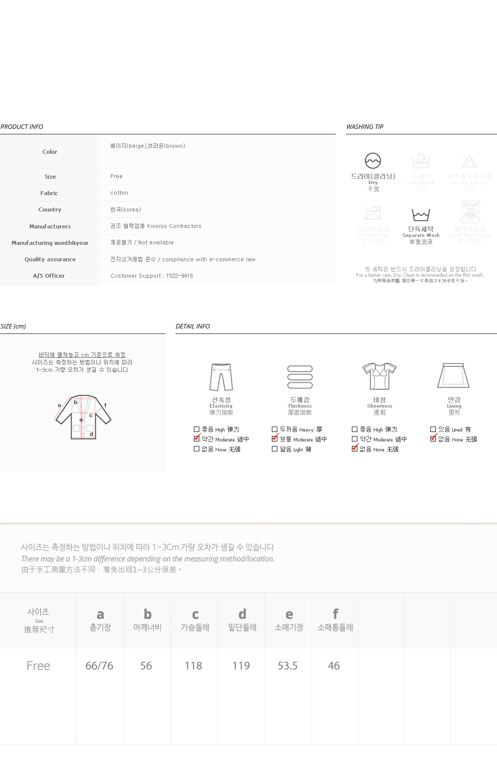 피팅 컬러와 사이즈는 베이지, Free 입니다