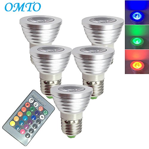 OMTO E26/E27 3W RGB Color Changing Spotlight with IR Remote Control Mood Ambiance Lighting 16 Color Changing LED Light Bulbs,Dimmable 85-265V (Pack of 5)