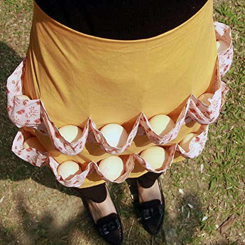 Chicken Egg Apron Kitchen Workwear Gathering Collecting Tool Aprons Bib with 12 Pockets Cotton Fashion Printed Waist Aprons for Women Girls WQ02 (Orange crush)
