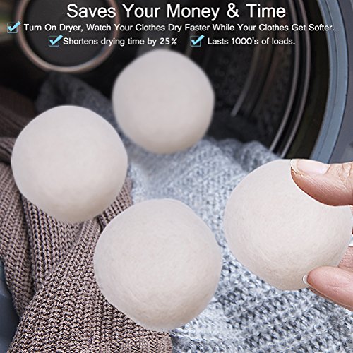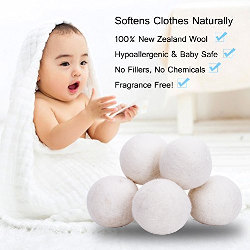 -. Feature : 100% Natural Wool Dryer Balls - NO FILLERS, NO CHEMICALS, NO SYNTHETICS! Fragrance Free! Great for Sensitive Skin,Towels,Comforters,Clothing,Baby Laundry,Delicates and Cloth Diapers / Eliminates Static Cling - The wool dryer balls create less friction against your laundry fibers and less friction leads to less static and a softer load. Prevents Static Cling by NOT Allowing Your Clothes to Rub against Each Other So That Your Drying Load Comes Out Static Free. / Saves Your Money and Time - With energy costs rising, it can be expensive to run your dryer. Shortening Your Drying Time Saving you Money and Time. No More Expensive Dryer Sheets and Lasts for Years. Quieter in the dryer and won't Disintegrate, Shed Nibs or Smell Like Toxic Plastic Like Other Spiky Dryer Balls on the market.(For light loads use 3-4 balls, for larger loads use 6-8 balls) / Your Clothes Will Last Longer - The balls work to soften laundry, reduce wrinkles, static cling, twisting, tangling; Your Clothes Will be Exposed to Less Wear and Tear in the Dryer / Pet Free - Dog and cat owners, these dryer balls will dramatically reduce the amount of hair left on your clothes after drying.