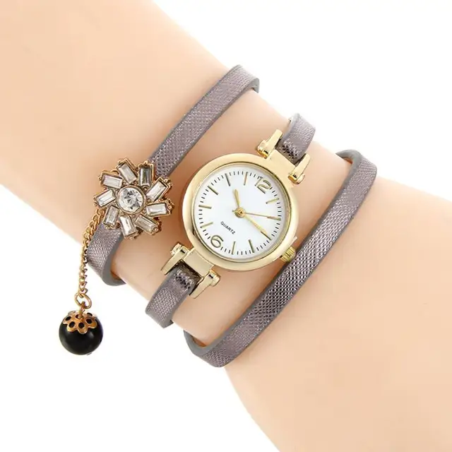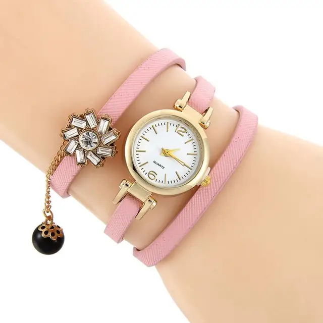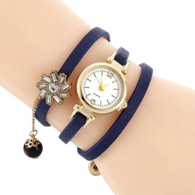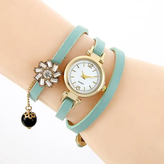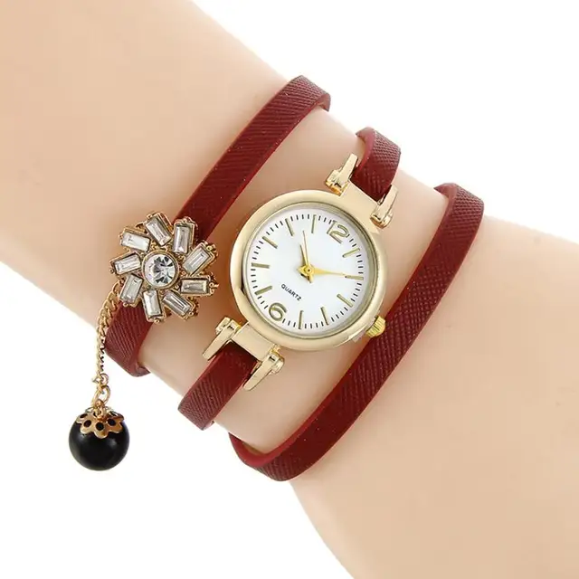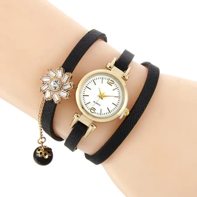 상품 내용 여성 라인 석 꼰 가죽 아날로그 석영 팔찌 팔찌 손목 시계 특징:
