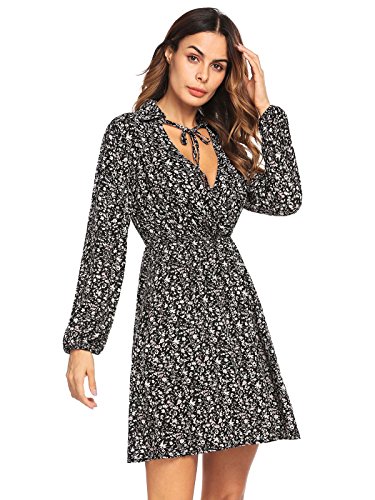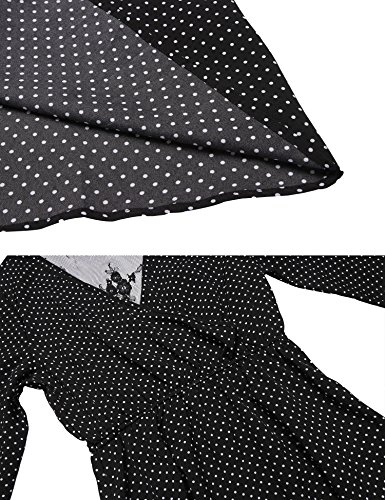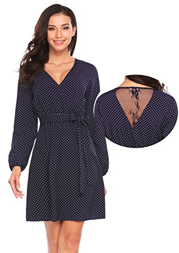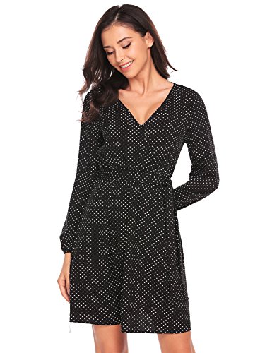 Beyove Women's Rayon Polka Dot Casual V-Neck Long Sleeve A-line Wrap Dress With Belt