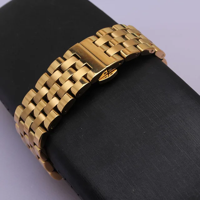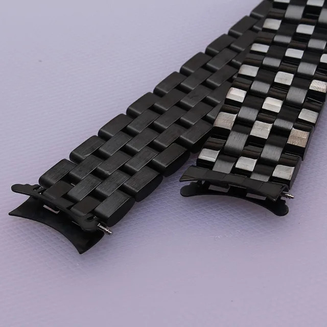 | [해외] 골드 블랙 금속 시계 밴드 스트랩 스테인레스 스틸 시계 손목 팔찌 16mm18mm20mm22mm24mm 곡선 엔드 액세서리 새로운 |