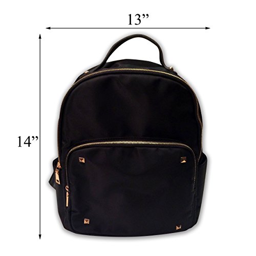 Product DescriptionCool nylon studded ladies backpack/purse in chic black and gold style.0