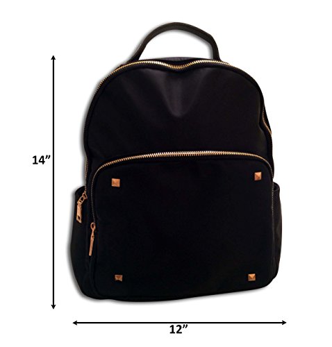Cute Black Fashion Backpack for Girls Designer Bag, Nylon with Gold Zippers and Studs