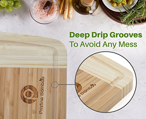 NON-SLIP, Extra Large Organic Bamboo Cutting Board| DEEP Juice Grooves | Wooden Chopping Board for Meat (Butcher Block), Vegetables, Fruit, Cheese| Best Wood Serving Tray (18x12) by PRISTINE BAMBOO