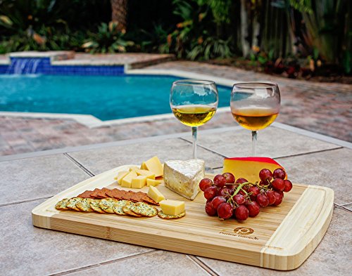 A CLEAN CHOPPING EXPERIENCE. This incredible large wooden cutting board is made with the highest quality of bamboo, Moso bamboo. Known for its durability and its ease of cleaning, you’ll never have to worry about cross-contaminating your food. Our antimicrobial cutting board lessens the risk associated with consuming raw meat. Butcher a chicken or use it as a wood serving board, it’s easily cleaned and maintained. The cleanest experience of any cheese, fruit, vegetable or meat cutting board.