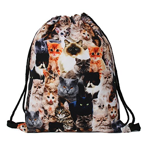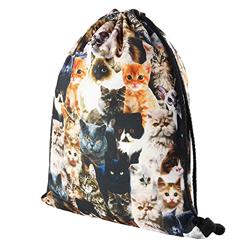 SusiRita Gym Drawstring Bags Sport Yoga School Backpack 3D Design 15"x11"