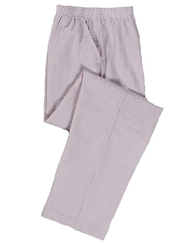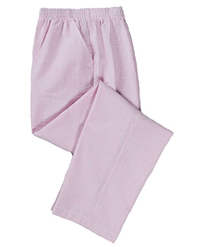 Studio : National Publisher : National Binding : Apparel Product Description Embrace the changing season with the cool, carefree style of our Stripe Seersucker Pants. These elastic-waist pants are designed for everyday, all-occasion wear, with simple styling, side-seam pockets, and easy-care cotton-polyester seersucker fabric. * Cotton-polyester * Lightweight and carefree with an elastic waist and slash pockets * Machine wash and dry * Imported * Sizes: Misses 8-18; Petites 8P-18P * Approx. inseams: 10696 Misses (29') 10697 Petites (27') 0