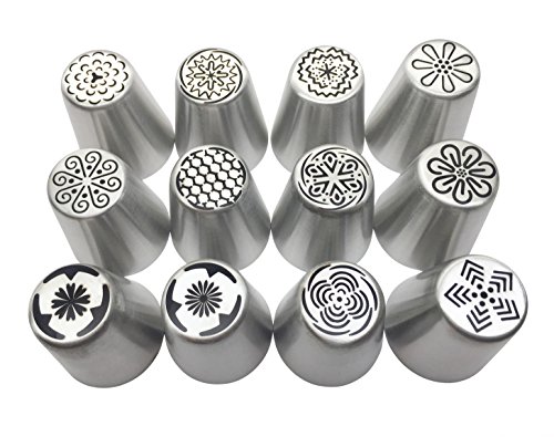 JJMG New Russian Large Piping Tips Set Icing Nozzles Fondant Cakes, Cupcakes, Cakes and Pastries Decorating Set (12 pieces)