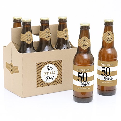We Still Do - 50th Wedding Anniversary 6 Beer Bottle Labels with 1 Beer Carrier