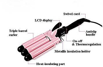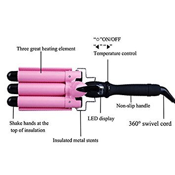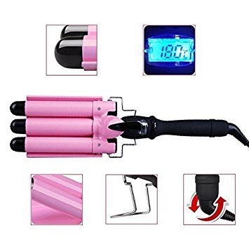 원본상품명: 3Barrel Waver Deep WaverセラミックCurler Iron Hairstyle Waver Ironホットツルカルアイロン複度Waver Ironピンクwith LCD