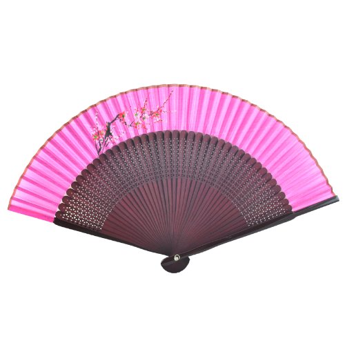Hand Painted Plum Blossom - Purple Red - Red Bamboo Silk Folding Fan