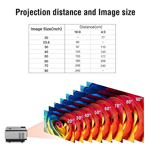 Image size of 20-100 inches,throw distance: 2.5-8 ft.The new wireless display supports Miracast, Airplay, and DLNA and enables connection between iPhone,iPad, Android device and Mac,No cords required. Portable Design: 8.3x5.5x3.2 inches, benefit from ipad-size dimensions,it can easily be moved from one place to another