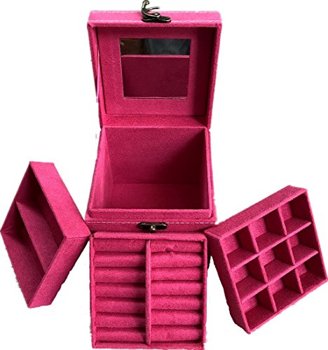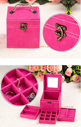 Beneking Three Layers Multi-functional Retro Woody Flannelette Jewellery Storage Box
