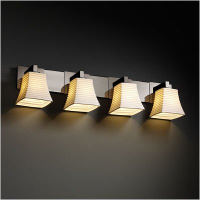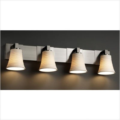 - Title : Justice Design POR-8924-15-WAVE-NCKL Limoges - Four Light Bath Bar, Impression Option: Wave Shade Impression, Choose Finish: Brushed Nickel Finish, Choose Lamping Option: Standard Lamping