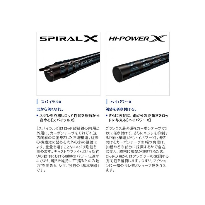 하이 파워X.나사《레》를 한층 더 억제해 오 #고, 시마노 독자적인 강화 구조.로드 전신을 한층 더 보강하는 강화 구조가 이「하이 파워X」.캐스트 시나 파이트시에 발생하는 나사《레》이라고 하는 현상을 억제하는 시마노 독자적인 구조입니다.스파이럴X의 최외층,혹은 카본 씨트 가로 세로 교차 노멀 구조의 위로부터 카본 테이프를 X상에 졸라 나가는 것이 특징.이 구조에 의해 나사《레》에 대하는 강도가 향상,blank《스》가 가지는 본래의 성능이 발휘되고, 캐스트 정밀도 향상이나 비거리 업.파이트시에도 우수한 안정감을 발휘합니다.