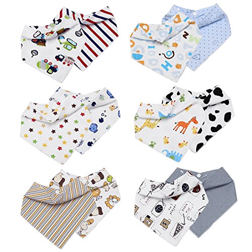 Bundle Monster Boys & Girls 12pc Various Design Baby Bandana Bibs With Snaps
