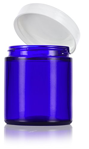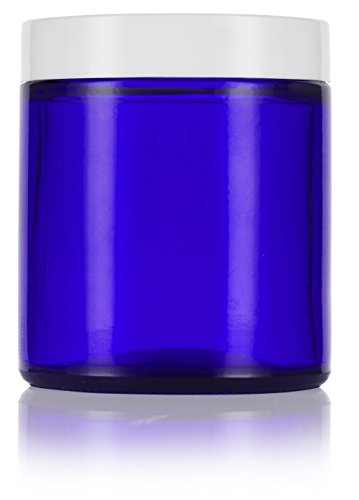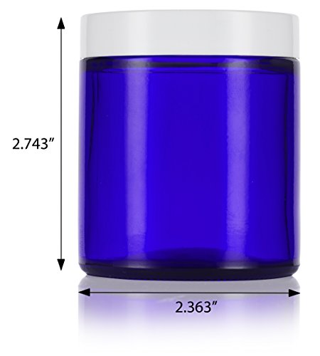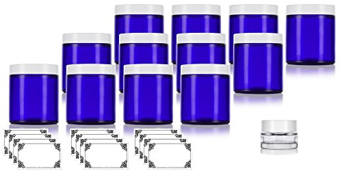 Includes 12- 4 oz Cobalt Blue Thick Glass Straight Sided Jar with White Smooth Lids + Labels + 0.25 oz Glass Balm Jar