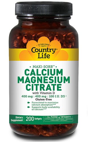Product DescriptionCountry Life Maxi-SorbTM Calcium Magnesium Citrate with Vitamin D -- 200 Softgels0