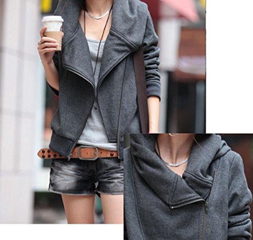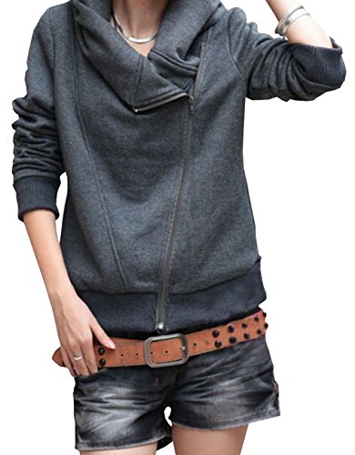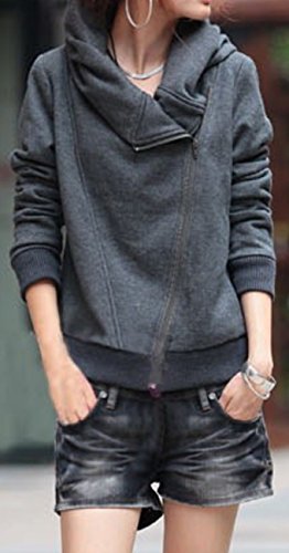 -. Title : Zufriedeneer アシンメトリー ジッパー スウェット パーカー レディース グレー