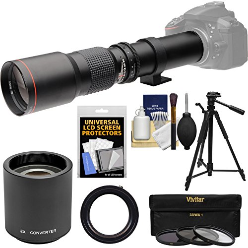 Vivitar 500mm f / 8.0망원 렌즈with 2x Teleconverter ( = 1000mm ) +삼각+ 3필터 키트for Canon EOS 6d,7d,70d