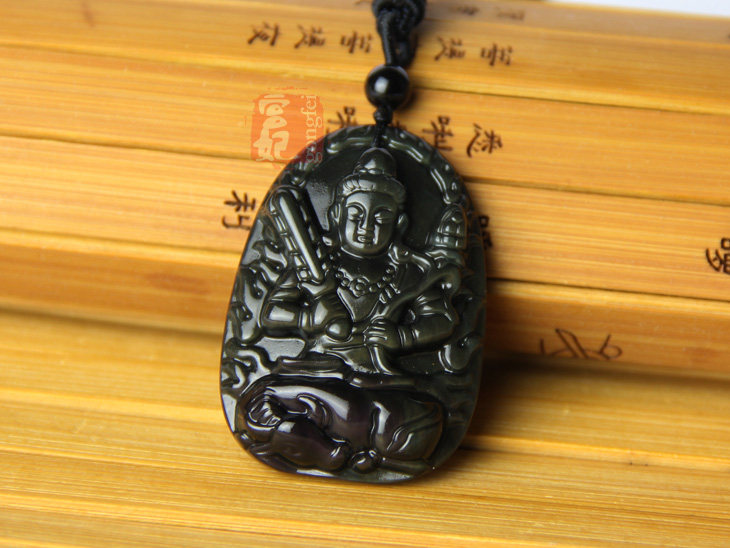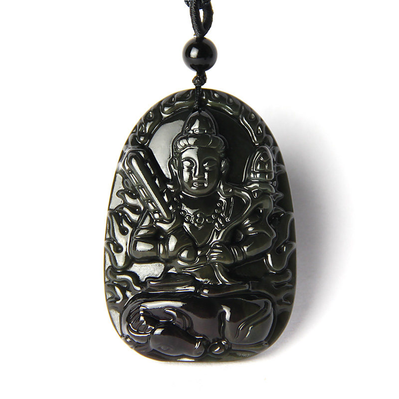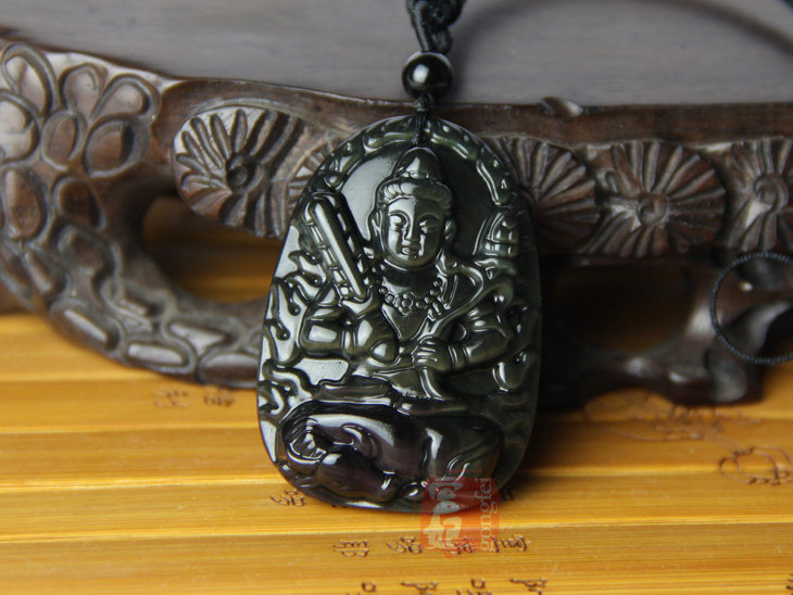 开光 天然彩虹眼黑曜石虚空藏菩萨 生肖牛守护神本命佛