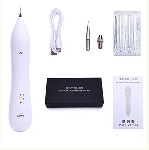 -. Feature : Removal spot without burning the normal skin/without blooding / easy carry / easy operation Using high-tech, electric ion carbonation functions and instantly sweep freckles, age spot,flat moles,etc,can be achieved quickly without bleeding, safe and side effects of medical cosmetic results / It has 3 kinds of intensity for different treatment. Lower level is used on spot and freckle. Strong level is used on mole and skin tags. / It use new generation of plasma micro district discharge technology with low temperature and high frequency / Replaceable Needles Professional mole removal device: It comes with 5 fine needles and 1 coarse needle. perfect for tattoo spot freckle fleshy nevus pigment. / Directly charge by USB line