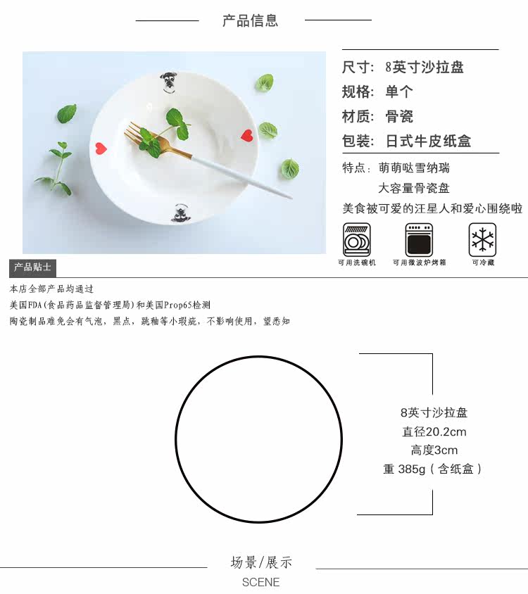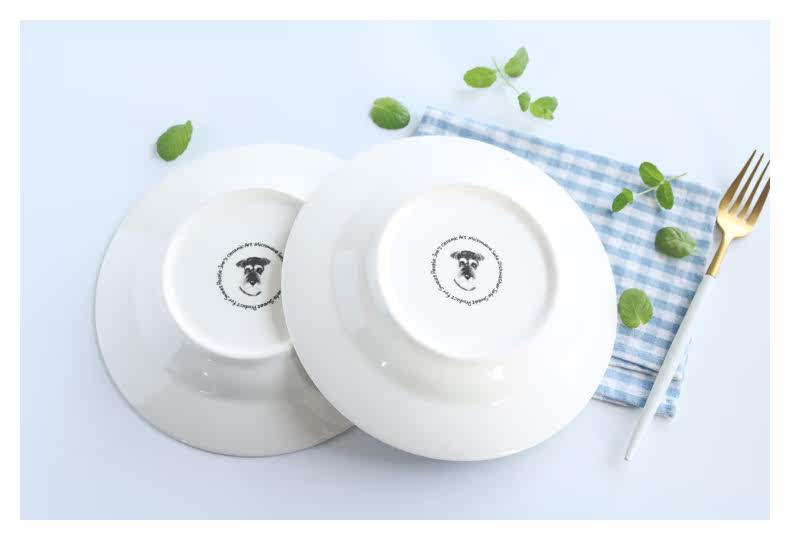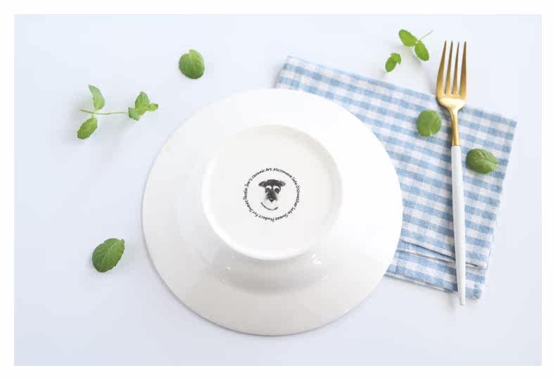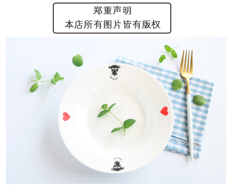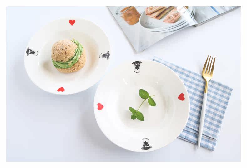 新款雪纳瑞宽边汤盘小清新爱心狗狗水果沙拉盘家用深盘菜盘子微波