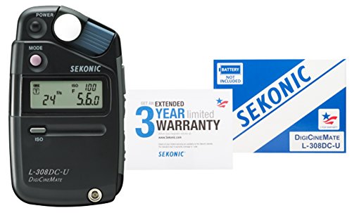 The L-308DC-U is the perfect light meter for today's DSLR and digital cinematographers as well as traditional still photographers. The LCD readout can be customized to display only specific functions needed for the task at hand for fast, easy operation. The versatility of today's cameras is expanding at an amazing rate. Digital SLR cameras are being used to record moving images and digital video cameras used to capture still frames for printing. Whether you are a DSLR videographer, cinematographer, still photographer or involved in any facet of image capture, the Sekonic L-308DC-U is the perfect meter for you. Three ways to Meter ? The HD Cine Mode: Perfect for todays DSLR videographers. Make exposure readings and control light using shutter speeds and frame rates, and get aperture settings with one-tenth stop accuracy. The Cine Mode: Designed for digital cinematography. Select from the most useful frame rates and shutter angles for exposure control with one-teth stop accuracy. Lux and foot-candle readout enables quick set up of lights. The Photo Mode: Full control for traditional still image photographers. Shutter-priority display of a full range of ambient and flash functions including Cord and Cordless flash measurement as well as ambient EV measurement. Three Ways to Measure Light ? The Lumisphere provides incident light readings for nearly foolproof exposure readings and enables lighting that scene before talent arrives The Lumidisc is perfect for lighting green screens, adjusting ratios and taking lux and foot-candle measurements. Reflected light readings enable measuring the brightness of subject tones, gray cards, light sources or window light.