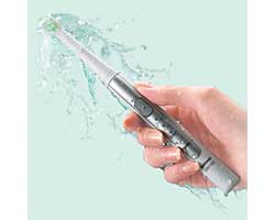 ![]() | 歯と歯ぐきにやさしい「ペングリップ」で磨ける 業界最小・最軽量※1のスリムボディだから、歯科衛生士が勧める「ペングリップ」で、歯と歯ぐきにやさしくブラッシングできる。手の小さな女性やお子様にも握りやすく、手ブラシ感覚で使用可能 ※ 音波領域内での振動 ※1 2006年12月1日現在(ナショナル調べ) ※2 ナショナル従来品EW1031との比較 |