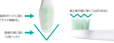 ![]() | 歯に軽く当てるだけで歯垢をしっかり落とす「新・音波振動※3方式」を採用 約26,000ブラシストローク/分でブラシだけを振動させ、手元の振動を小さく抑える「新・音波振動※3方式」を採用。「ペングリップ」しやすく、歯のすみずみまで届いて歯垢をはじき出す 歯と歯ぐきが気になる人に、ソフトモード 回転数が10%ダウンして、歯ぐきへのあたりがソフトに ※3 音波領域内での振動 *イラストはすべてイメージ図 |