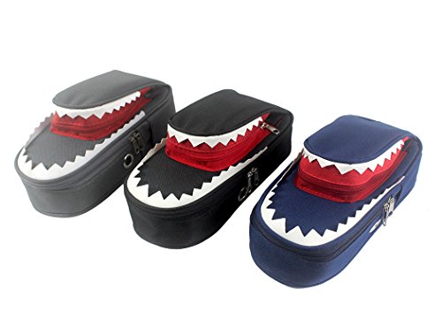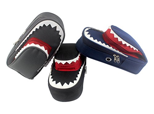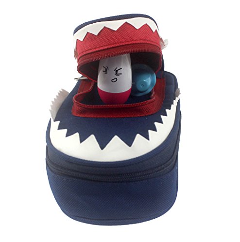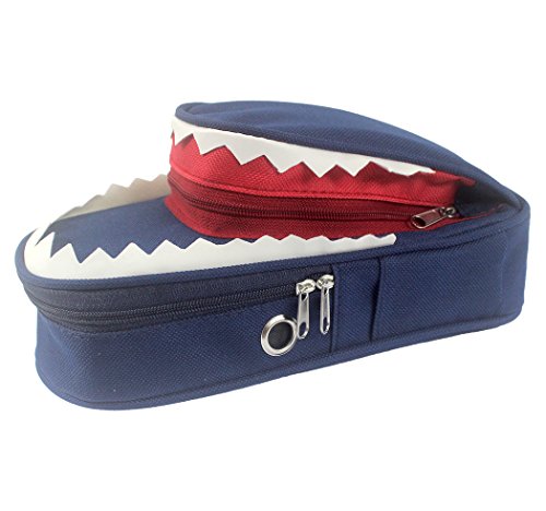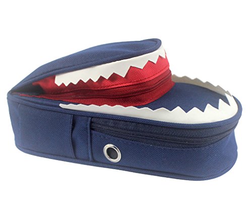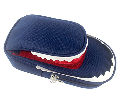 Sipliv 3D Shark Pencil Bag, Double Layer with Side Pocket, Blue