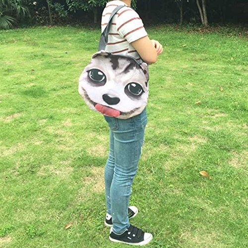-. Feature : Kinda 3D effect,very eye catching. / Adjustable shoulder strap,Zippered close and zippered inside pocket. / Made from high quality fabric, good durability, nice design. / It can store the comestic and pocket money an so on / Measure approximately 15" wide and 13" high, NOT counting the ears or the strap!