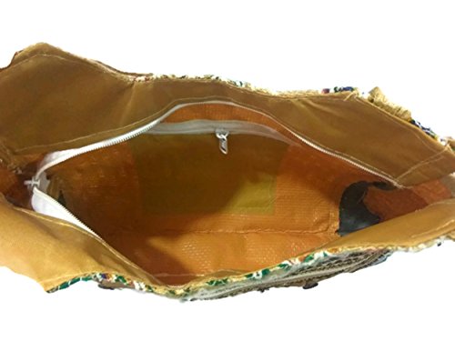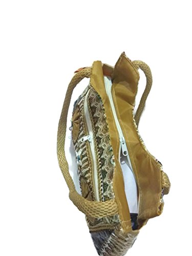 small large Medium Size double strap Stylish Eco-friendly Jute handbag Tote Bag with Zippered Closure jute laminated lunch bag variety bags (Medium size with Large Front Pocket)