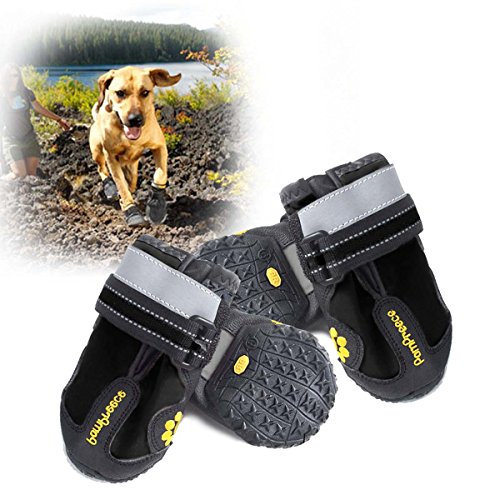 About Hapurs: Hapurs is the only legal owner and seller of the trademark Hapurs. We are not responsible for the fakes you bought from other tortious seller.We take full responsibility for the quality of our products.?We are always dedicated to provide wonderful products and nice service to all the customers and hope you will love them. How to Measure Dog Paws for Dog Boots 1£ºWalk your dog onto a hard and flat concrete, linoleum or wood surface. 2£ºPlace a sheet of paper beneath a front paw. Lift the other front paw to get your dog to put more weight on the paw being measured for the most accurate measurement. 3£ºMark the paper at the paw's widest points on both the left and right side. Measure the length of the dog's paw by making a mark at the base of the pad and at the end of the nails. 4£ºMeasure the distance between the two marks indicating the width using a ruler and write down the measurement in both inches and centimeters. Repeat to find the length. 5£ºCompare the measurements against a sizing chart below to find your dog's boot size. Size Chart:1#(XXS)|2#(XS)|3#(S)|4#(M)|5#(L)|6#(XL)|7#(XXL)|8#(XXXL) Length(mm):58 mm |60 mm |62 mm|65 mm|70 mm|75 mm |80 mm |85 mm Width(mm) :35 mm |40 mm |45 mm|50 mm|57 mm|64 mm |70 mm |75 mm Please Note: manually measurement ,please allow 3-5 mm differs ,thanks ! Package Included 4 pcs x Pet Waterproof BootsFeature