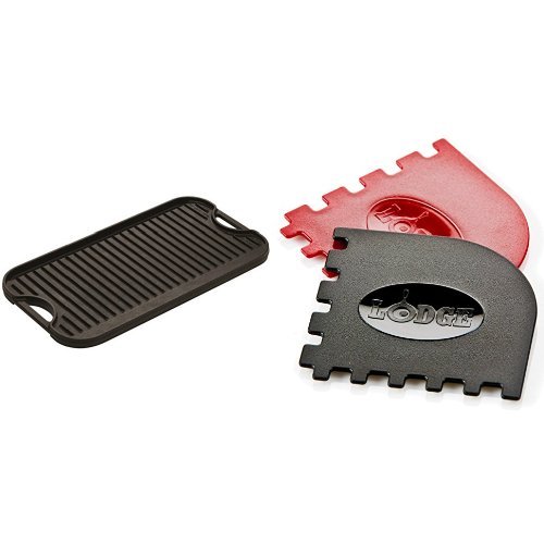-. Title : Lodge Cast-Iron Reversible Grill/Griddle, 20-Inch x 10.44-Inch, Black and Lodge SCRAPERGPK Grill Pan Scraper, 2-Pack Bundle