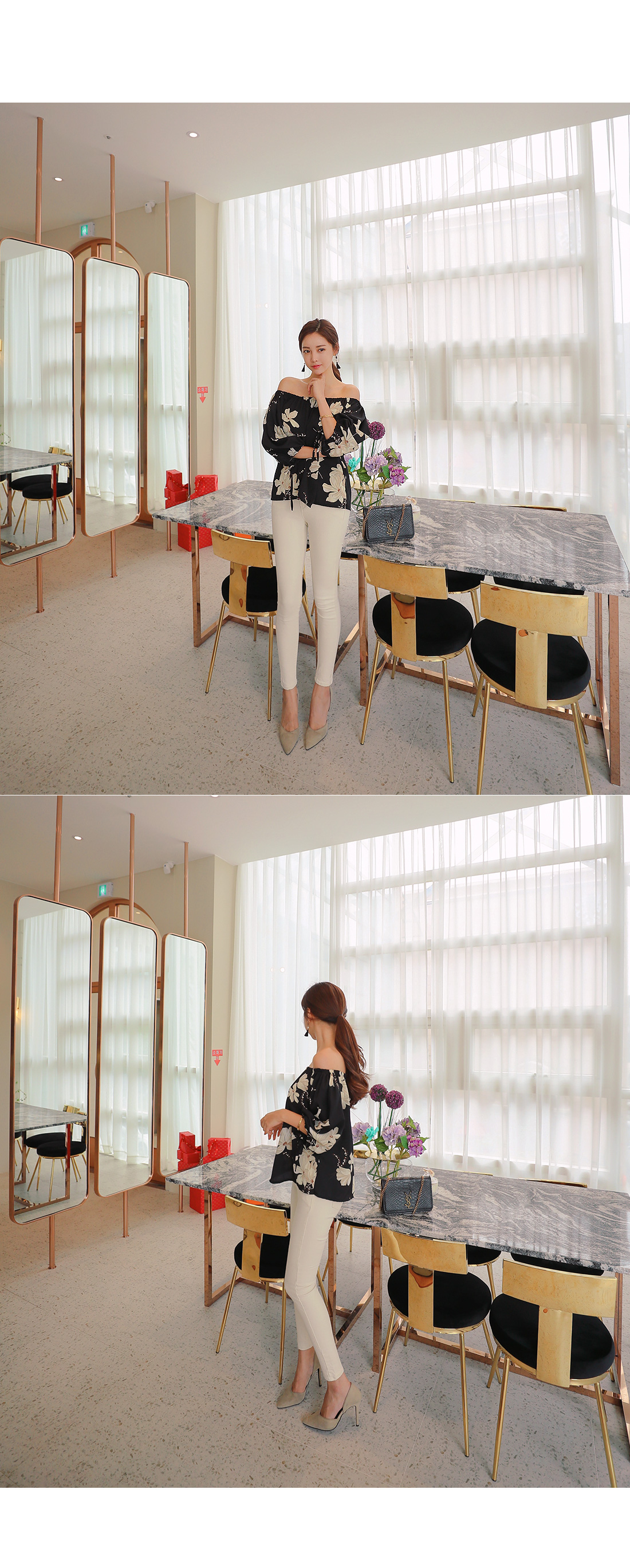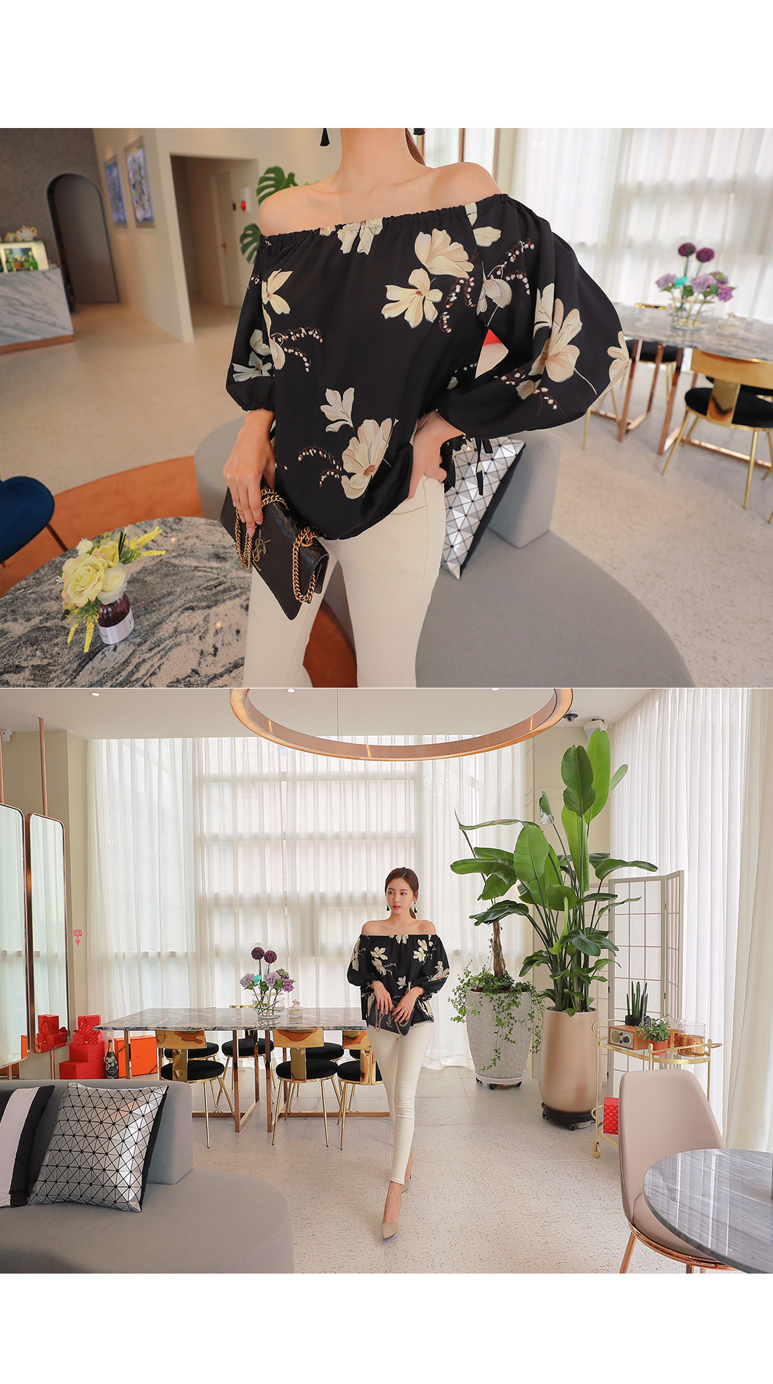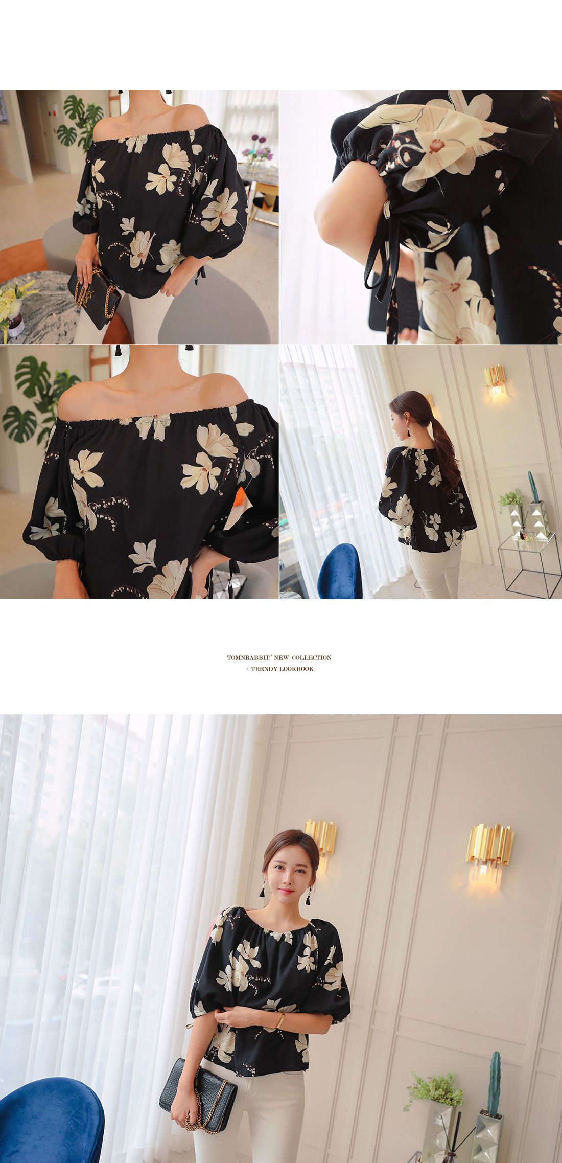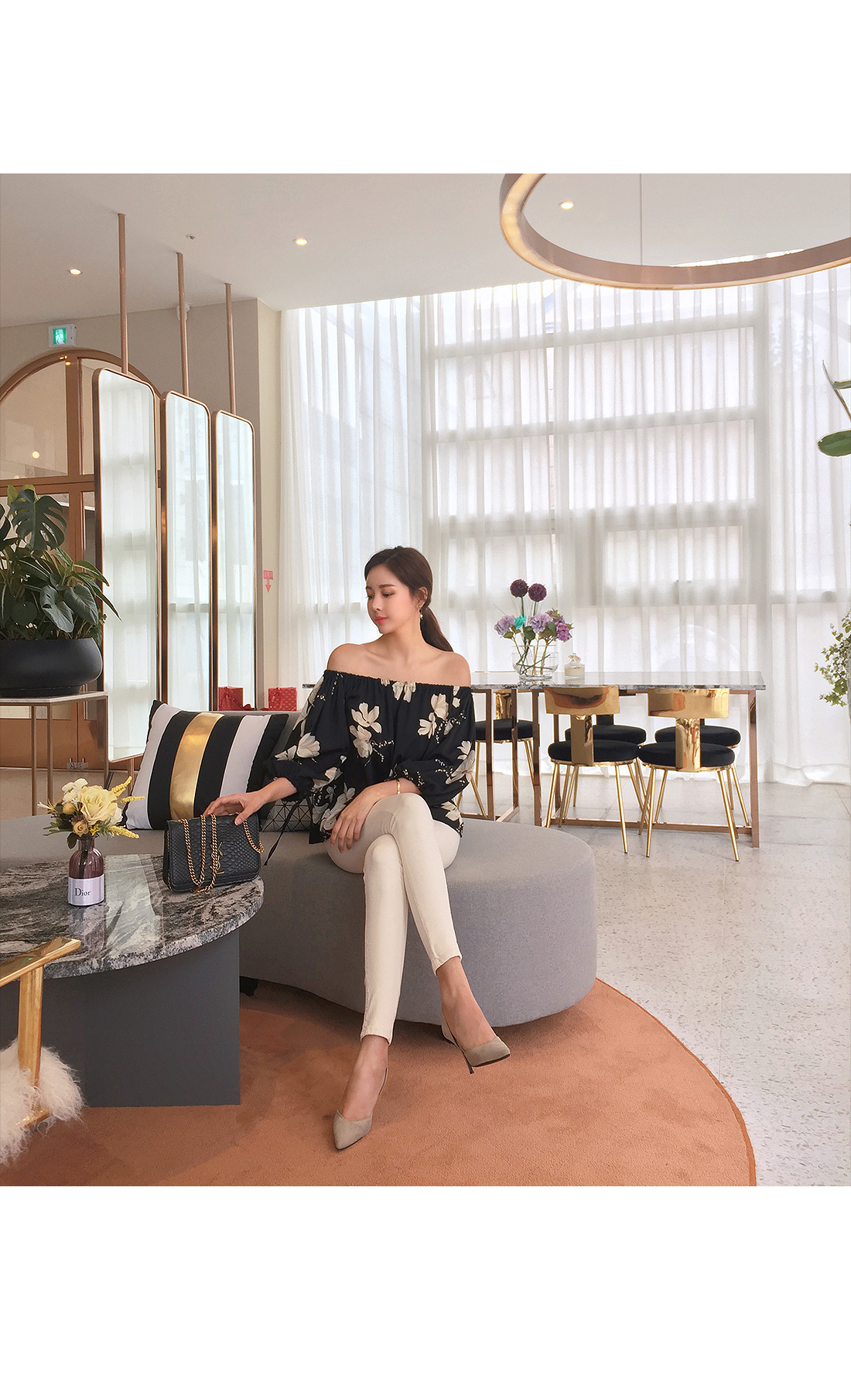 오프숄더 디자인으로 제작된 블라우스 아이템인데요,