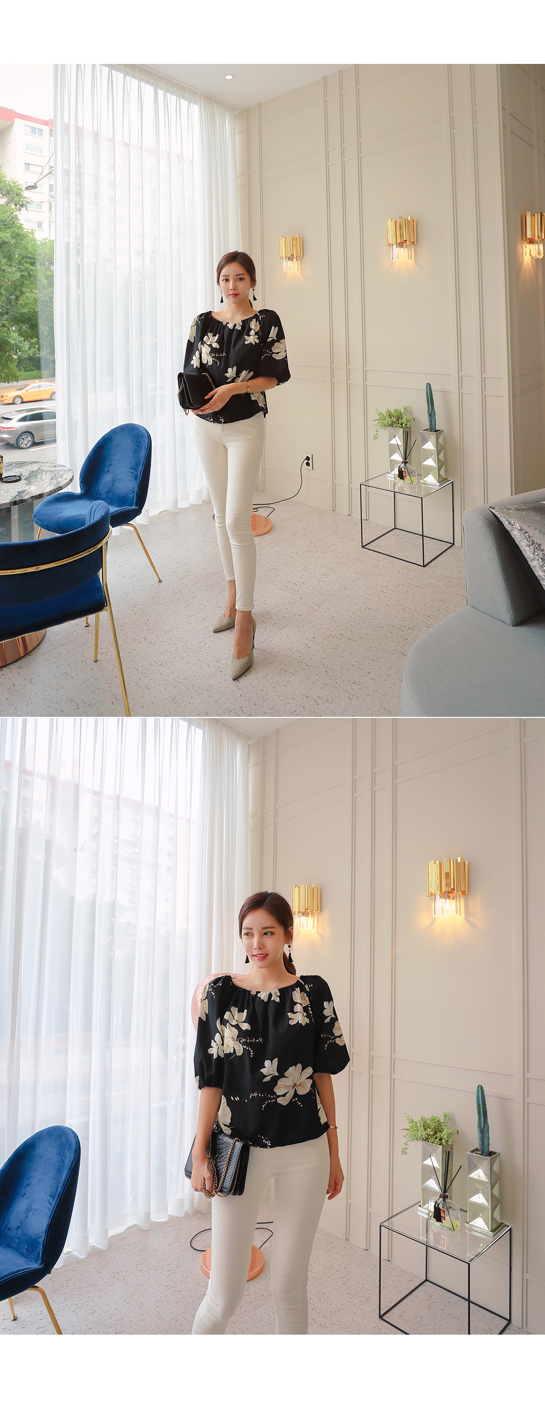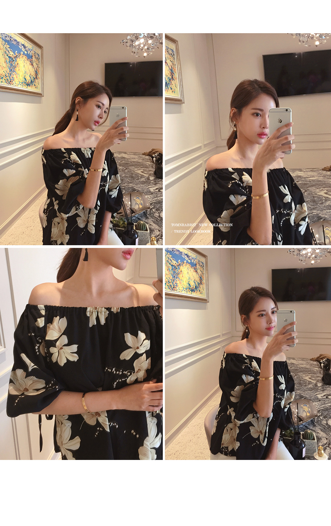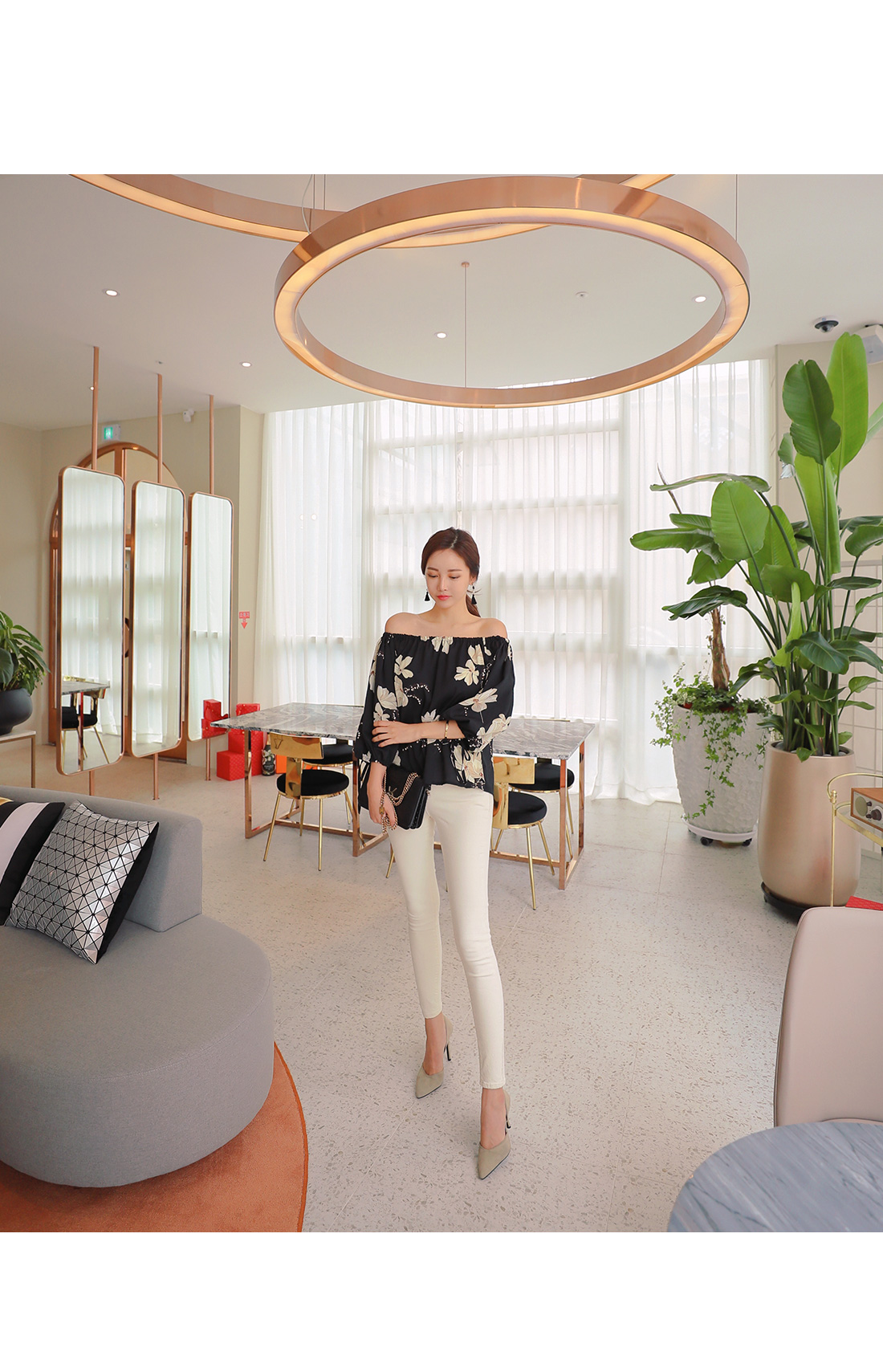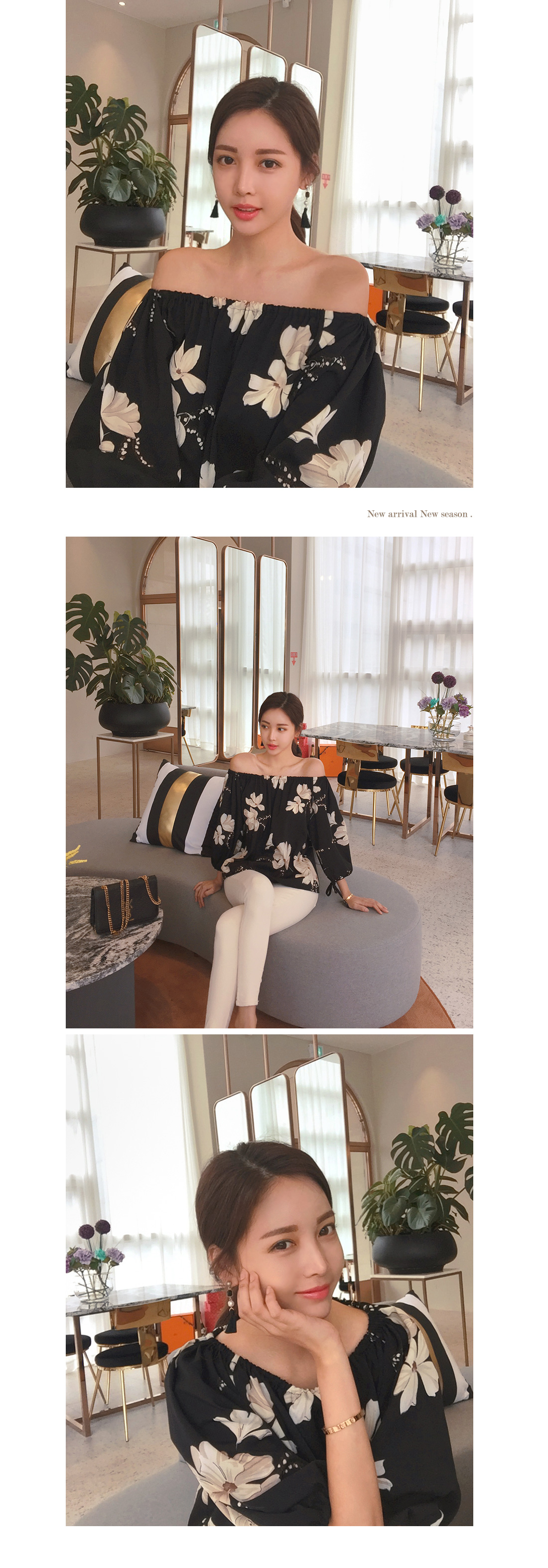 오프숄더 디자인으로 제작된 블라우스 아이템인데요,