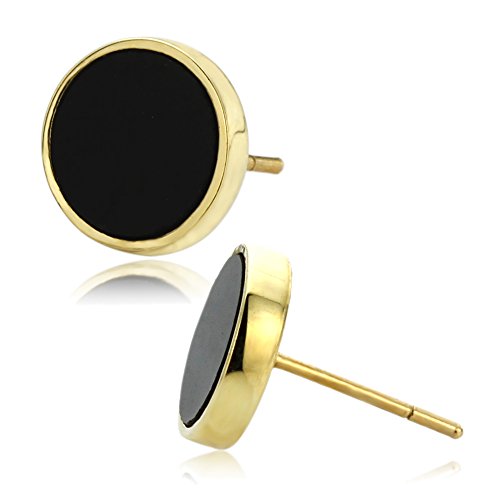 -. Title : 14K Yellow Gold 8mm Round Simulated Onyx Bezel Stud Earrings