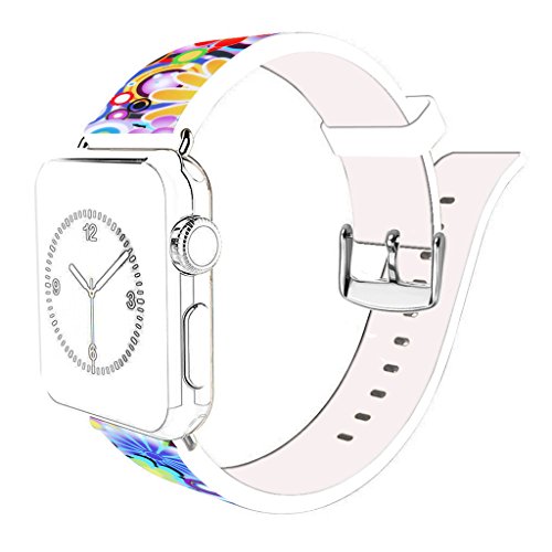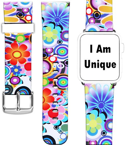 Iwatch Strap Band,Series 1 Series 2 2016 Apple Watch Strap Sport 42Mm Genuine Leather Replacement Wonderful Beautiful Flower Theme
