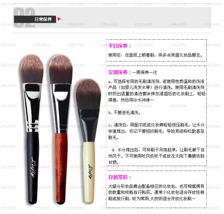 | 想要轻松拥有细嫩无暇、自然得体的底妆吗?无论是粉底液还是粉底霜,它都能轻松涂匀。特别是鼻子、嘴巴、眼睛部位的皮肤,不会有厚重的感觉。 取适量粉底液或霜倒于掌心,用粉底刷沾取,在面部从中间到外侧均匀刷开,直至面颊呈现匀净自然效果 刷子派观点:很扁并且很有弹性的一把刷子。宽身,扁平,毛刷密度较高,能以薄透的手法,画出无暇的妆容。 白桦杆:总长12cm,毛长3cm; 黑木杆:总长13.5cm,毛长3cm; 红纹杆:总长13.5cm,毛长3cm; |
