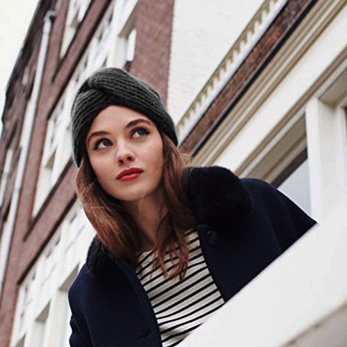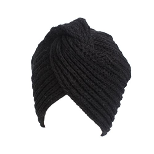 Package Including 1 x Women Winter Warm Turban Soft Knit Headband Cross Twist Arab Hair Wrap Hat Cap Beanie Crochet Headwrap Women Cap (Black) 0
