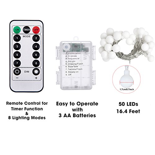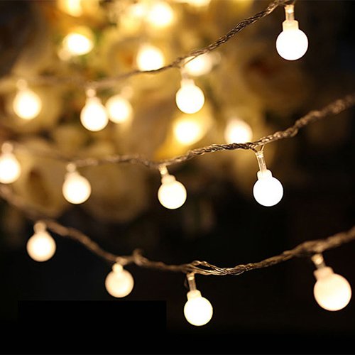 - CUTE BALL DESIGN FOR ENDLESS POSSIBILITIES: These Battery Operated String Lights include 50 small LED balls, perfect for adding a cute finish to endless settings. Just hang them around ceilings, trees, decks, patio umbrellas, photo walls for holiday, party, wedding or daily decorations.