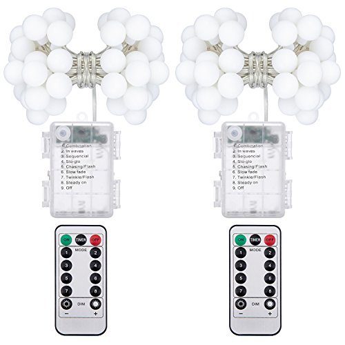 - REMOTE CONTROL FOR EASY OPERATION: These Globe String Lights come with a remote control for easy operation. You can turn on/off the lights, change the lighting modes in sequence (Combination, In Waves, Sequential, Slo-gol, Chasing/Flash, Slow Fade, Twinkle/Flash, Steady ), set the time (6 hours on, 18 hours off, cycle daily) and even adjust the brightness with only 1 control.